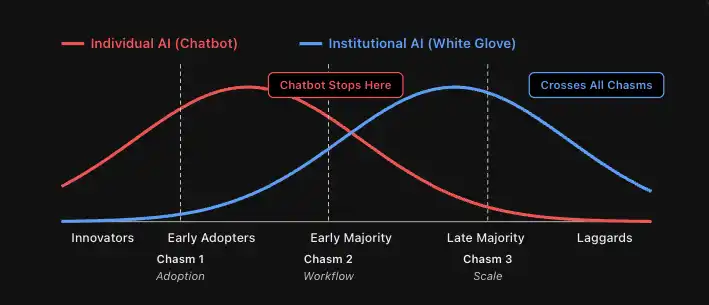 Institutional AI must deliver incremental benefits. And incremental benefits are much harder to commoditize than time saved.