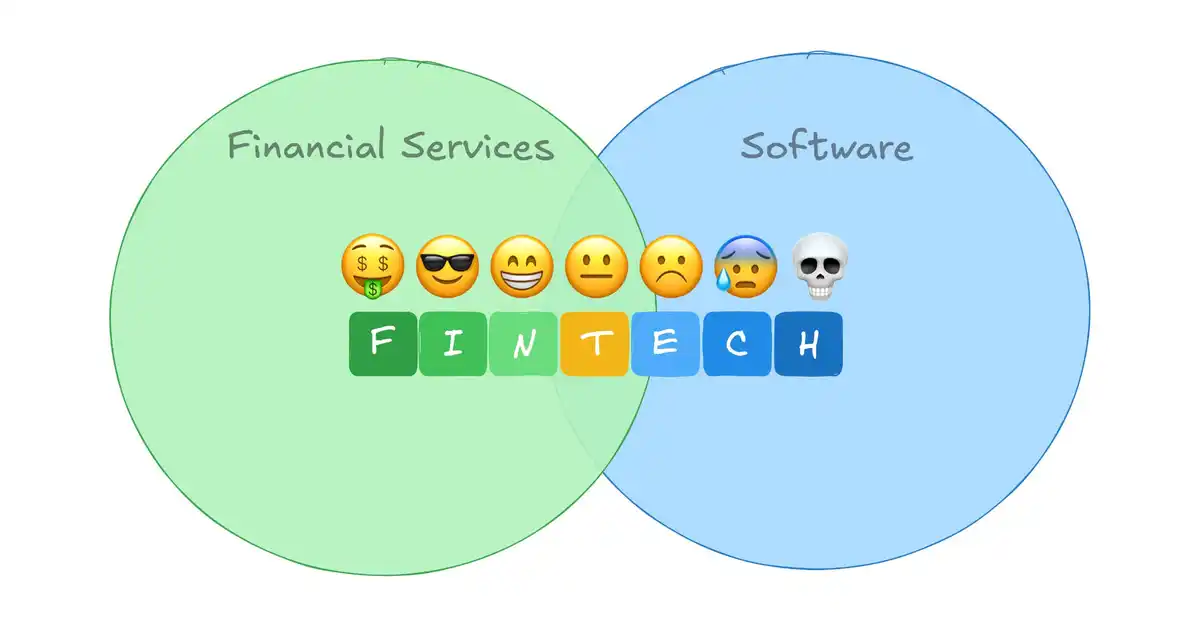 "fin"意味着来自。gov 域名的大量邮件、长达数月的审计、比你自己更熟悉你 SAR 申报历史的合规官员,以及飞往夏洛特或华盛顿的工作日差旅。"tech"则是一个精致的移动端 App、10 倍的用户体验,以及在 Blue Bottle 喝咖啡聊投资。