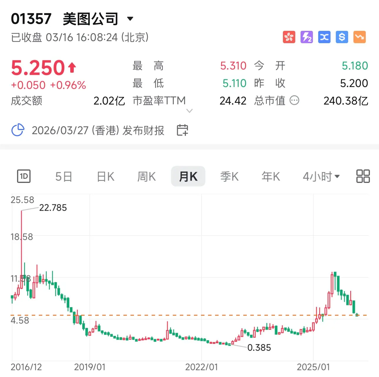 2022 年,加密市场暴跌,美图账面浮亏超 2.8 亿元人民币,"投机炒币"的骂名铺天盖地。港股美图的股价也迎来了历史新低。