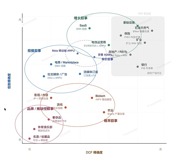 但是好在,传统的 DCF(Discounted Cash Flow,现金流折现模型)已经运行多年,对人类各种行业的适用度也基本清楚,纯粹的 Meme 可以不考虑 DCF,但是任何要面对市场考验的项目方,都必须讲述出自己的叙事。
