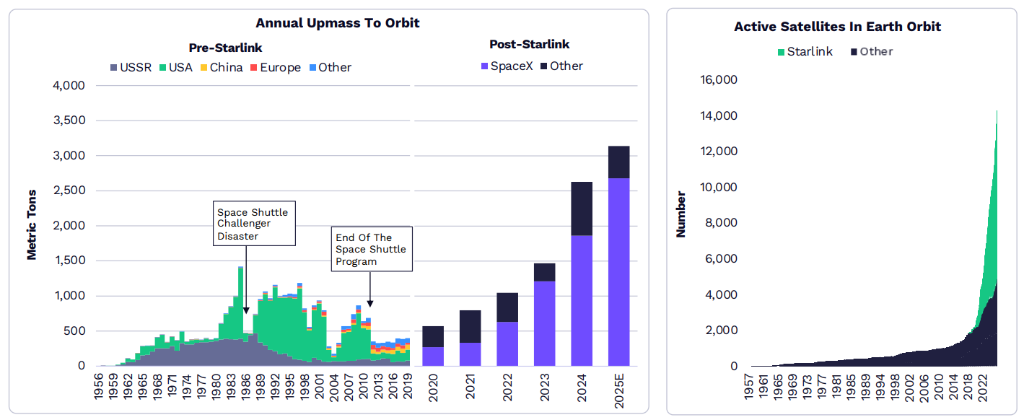 ARK autonomous team analyst Dan McGuire pointed outSpaceX has reduced rocket launch costs by approximately 95% since 2008.Currently, there are over 9,000 active Starlink satellites, accounting for more than two-thirds of all orbiting satellites.