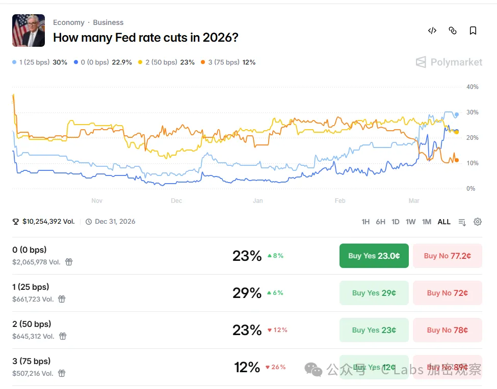 目前概率最大的,还是26年维持目前利率不变,从23%升到了30%。