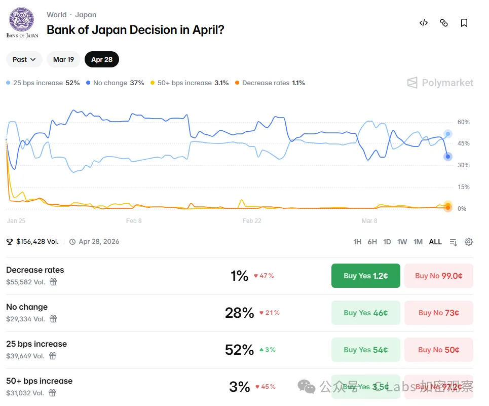 投资者比较关注的日本央行也受此影响,4月份加息的概率也达到了52%,超过一半的概率。