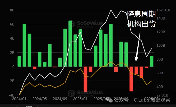 如今降息预期没了,散步不敢上车,反而是机构疯狂进场,三月份比特币现货ETF反而实现了净流入。