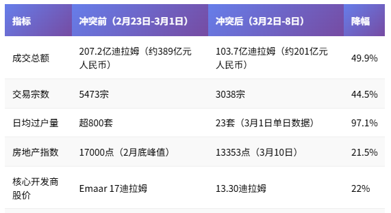 冲突爆发后,迪拜房产市场的崩塌速度远超预期,核心数据呈现“断崖式下滑”,流动性枯竭成为最致命的打击。