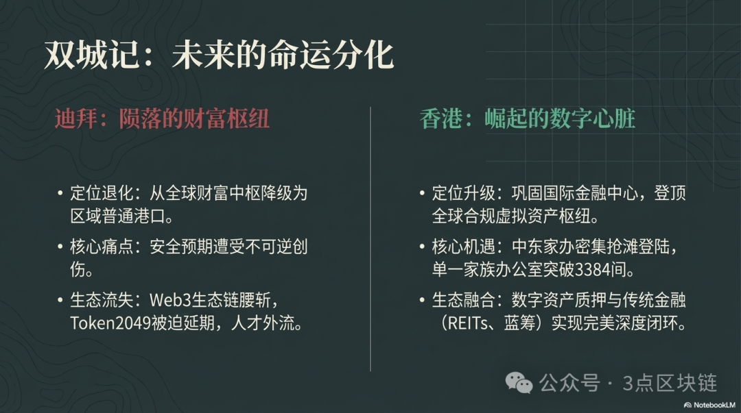 面对迪拜的局势崩溃,全球资本的迁徙逻辑清晰且明确——放弃高风险、低合规、低流动性的迪拜资产,转向安全、合规、高效的香港与数字资产。