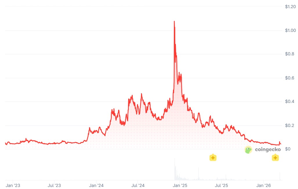 ACX较历史高点已跌去97.5%。来源:CoinGecko