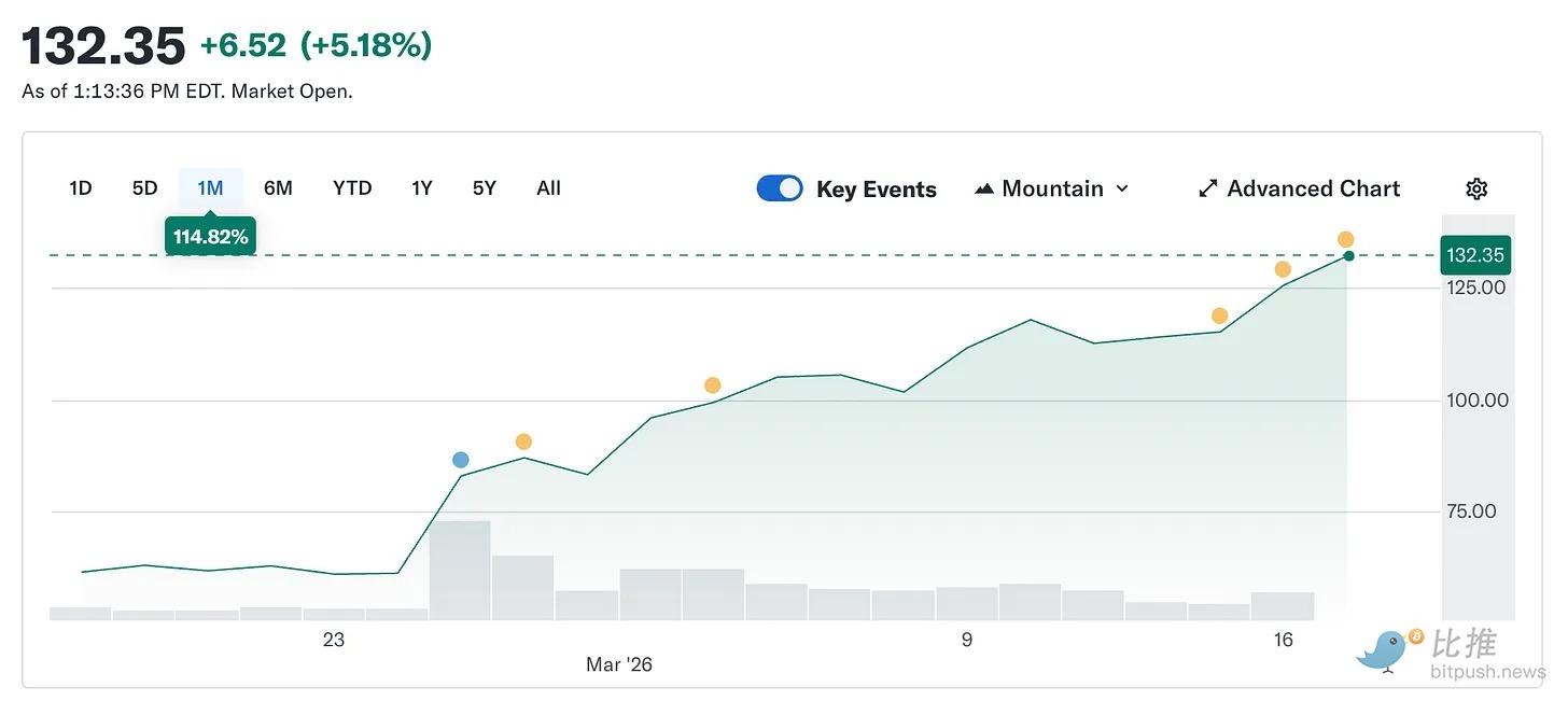 This is Circle, a company the market is willing to pay $123 for: a company at the heart of tokenized finance, AI-powered business, cross-border payments, and prediction markets, with regulatory support from the GENIUS Act and the CLARITY Act highly likely to pass before summer. Bernstein has given it a price target of $190, while Clear Street has $136. Seaport Global, the most favored stock on Wall Street, has a price target as high as $280.
