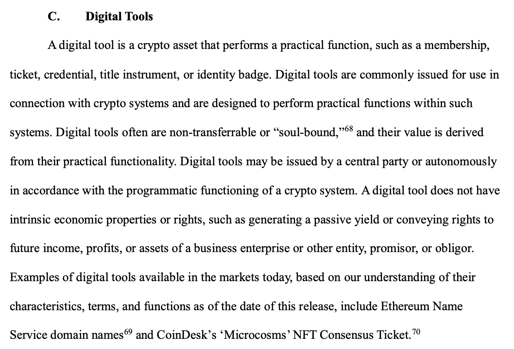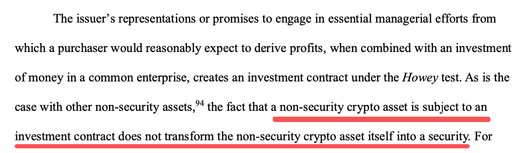 这是本文件最具创新性的解读:非证券类资产(如数字商品)可以作为投资合同的一部分进行销售,但资产本身并不会因此变成证券: