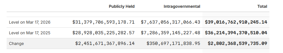 最近这次加速增长,与政府持续高额支出有关,包括日常预算和近期中东地区军事行动的额外开支。一些报道指出,这一时期恰逢美国与以色列对伊朗的军事冲突启动数周,军费投入推高了短期借款需求。
