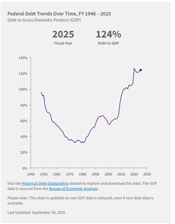 美国国会预算办公室和责任联邦预算委员会的分析都提到,债务相对于国内生产总值的比例已在2025财年达到124%,长期下去可能让经济更容易受利率波动影响。