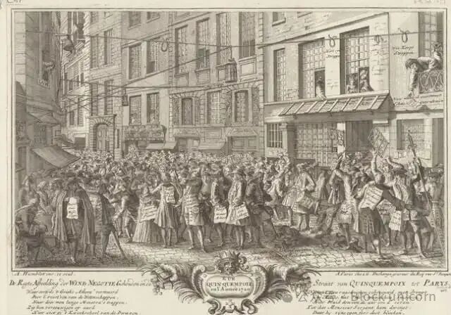 约翰·劳将这些缺乏流动性的殖民地资产包装成可兑换黄金的公司股份。普通的巴黎市民纷纷涌入。一年后,这项计划使他成为欧洲首富和法国财政总管。尽管只是暂时的。