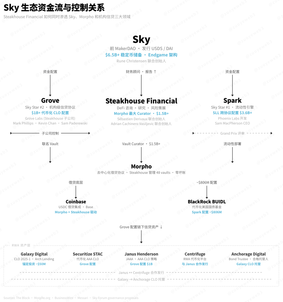· Grove,第二颗星星,管理 Sky 的机构和 RWA 业务,不过最重要的其是 Steakhouse Financial 的产品,而 Steakhouse 又是 Morpho 最大的 Curator。