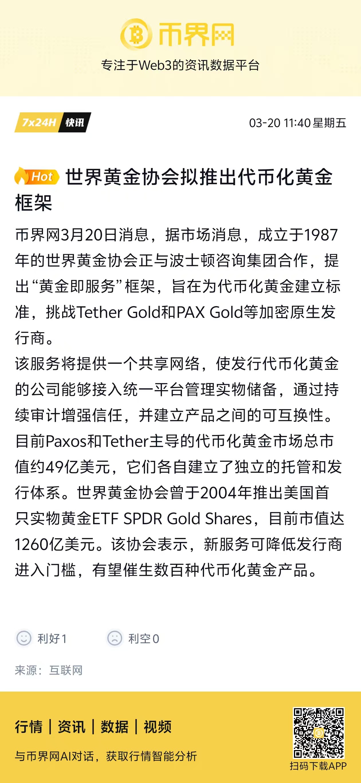 不过,世界黄金协会在黄金行业有二十多年的积累,和各国央行、金矿企业、托管行都有长期合作关系。它的入场至少说明一件事:代币化黄金已经不是加密圈的自娱自乐了,传统黄金行业开始认真对待这个赛道。
