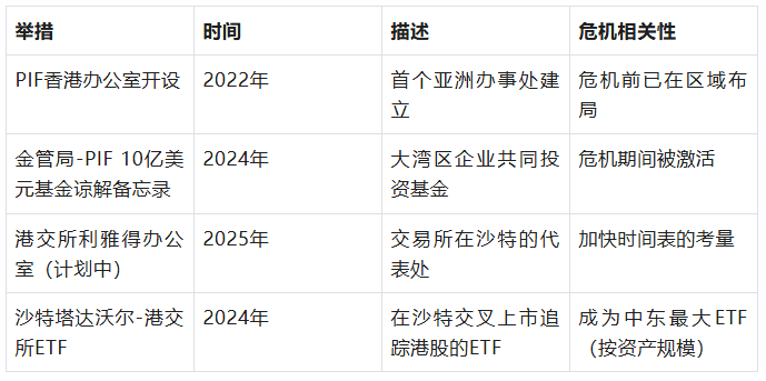 2023年至2025年的关系积淀。危机期间的资本流动并非偶然,而是建立在多年系统性关系建设的基础之上。2023年2月,行政长官李家超访问阿联酋和沙特阿拉伯,为政府间框架和金融服务合作工作组奠定了基础。香港与GCC的贸易规模增至220亿美元,较数年前增长约三倍,香港还担任GCC商品再出口至中国大陆的枢纽,处理了3.24亿美元的GCC商品再出口,并为113亿美元的中国出口至GCC提供便利。塔达沃尔与港交所的跨上市协议,使一只追踪港股的ETF成为中东规模最大的ETF。