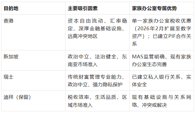 表3:家族办公室迁移目的地评估标准