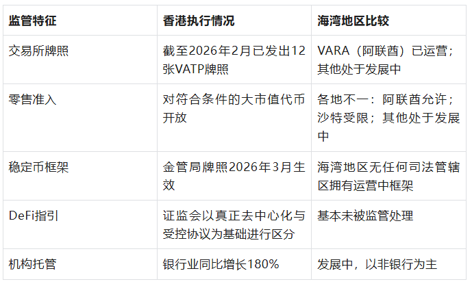表4:香港与海湾地区加密货币监管框架比较