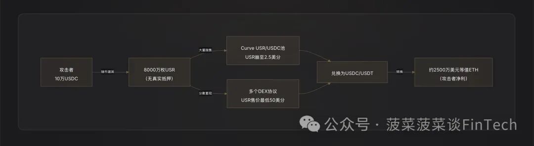 退出阶段 : 攻击者将8000万枚USR拆分至多个协议,兑换为USDC/USDT后转换为ETH