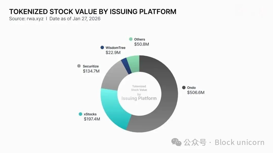 虽然代币化国债的总发行量约为 93 亿美元,但代币化股票的累计发行量仍约为 9 亿美元,两者相差超过十倍。