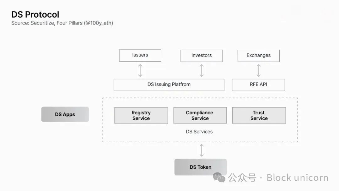 Securitize 的 DS 协议是其专有的合规基础设施,已用于支持贝莱德的 BUIDL 代币流通。与 Chainlink ACE 和 ERC-3643 类似,它使 ERC-20 代币能够在代币层面强制执行合规性检查,但仅限于 Securitize 发行的证券。