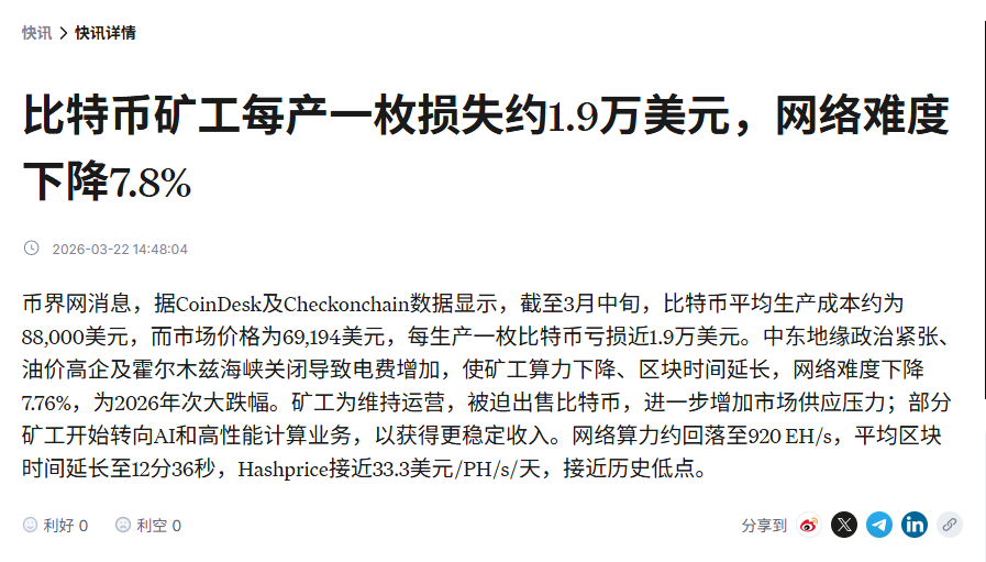 话又说回来,对于那些已经在亏损边缘试探的矿主来说,不转型可能是等死,转型了或许还能搏一搏。7.76%的难度下调听起来只是个数字,但它背后折射出的是整个行业的结构性困境。当挖矿从一门生意变成了一种负担,及时止损和寻找新出路就成了必然选择。