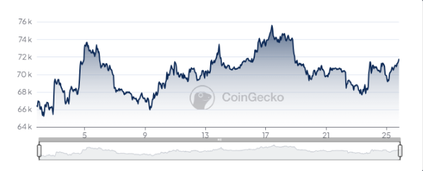 在最近的地缘政治危机中,比特币保持了其价格稳定。来源:CoinGecko。