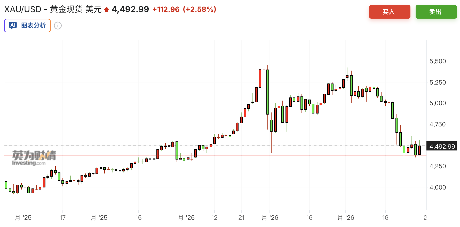 本月黄金价格累计跌幅达15%,从1月收盘峰值较高点的跌幅一度触及19%,逼近通常意义上标志熊市开启的20%警戒线。但周五出现转机——投资者重新入场,当日金价反弹约3%,市场情绪有所修复。