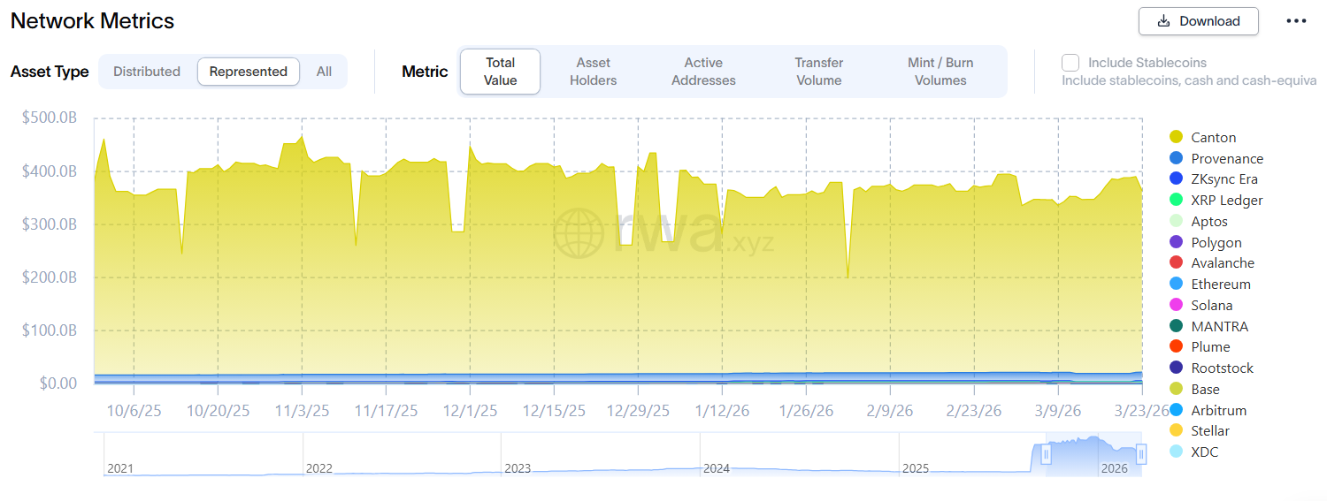 Canton领先于RWA代币记账网络。来源:RWA.xyz
