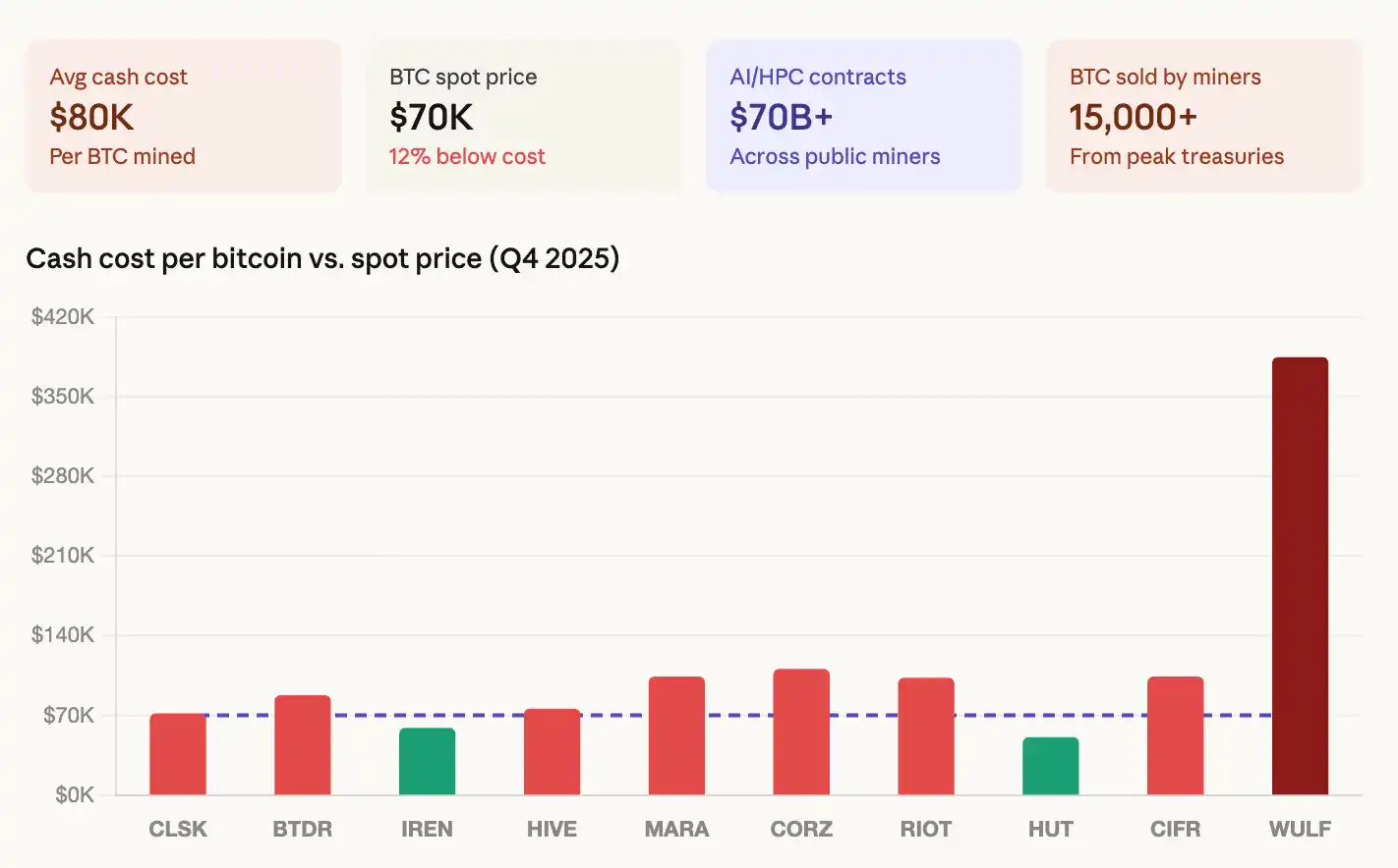 这到底是对不利经济环境的临时反应,还是永久性的结构转变?取决于一个变量:比特币的价格。如果回到 10 万美元,挖矿利润恢复,AI 转型放缓。如果停在 7 万美元或更低,转型加速,过去十年以挖矿为核心的矿业,将继续消失在一个完全不同的东西里。