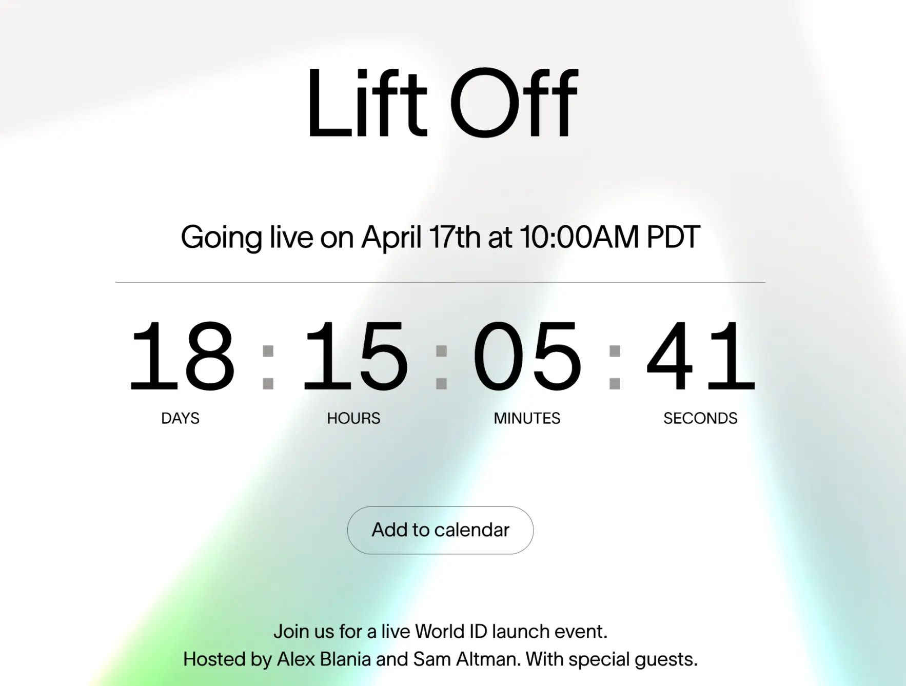 4 月 17 日,World 将在旧金山举办「Lift Off」World ID 全球发布会,Sam Altman 将亲自出席并与 world CEO Alex 共同主持。