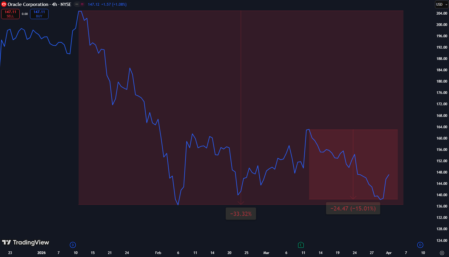 从ORCL的技术面来说,138到140美元这个区间是近期争夺的焦点。3月底股价曾在这里短暂企稳,如果后续季度能给出明确的利润率改善信号,这里可能是阶段性支撑;但如果AI数据中心的成本压力在下一个季度继续扩大,股价的下行空间不会就此停止。
