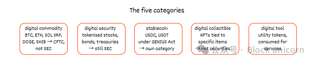 美国监管机构首次对加密货币有了统一的定义。五个类别,每种代币都属于其中一类。接下来我会给出这些定义,请以你从未听说过这些概念的想法来阅读。