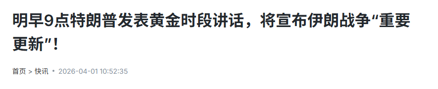 因此,明天早上9:00特朗普的全国电视讲话至关重要!他将在讲话中宣布关于伊朗战争的重大更新,这也是自开战33天以来最为明确的终局信号。