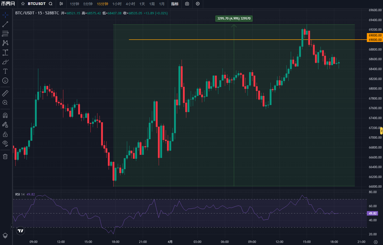 而随着风险市场整体情绪回暖,华尔街对加密资产的需求也在增强,比特币也成为了其华尔街资金流入的最大加密市场。因此,比特币能够一度突破69,000美元的关键价位。