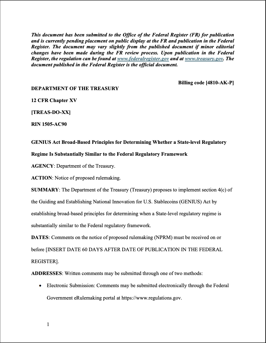 美国财政部发布的NPRM。来源: 美国财政部