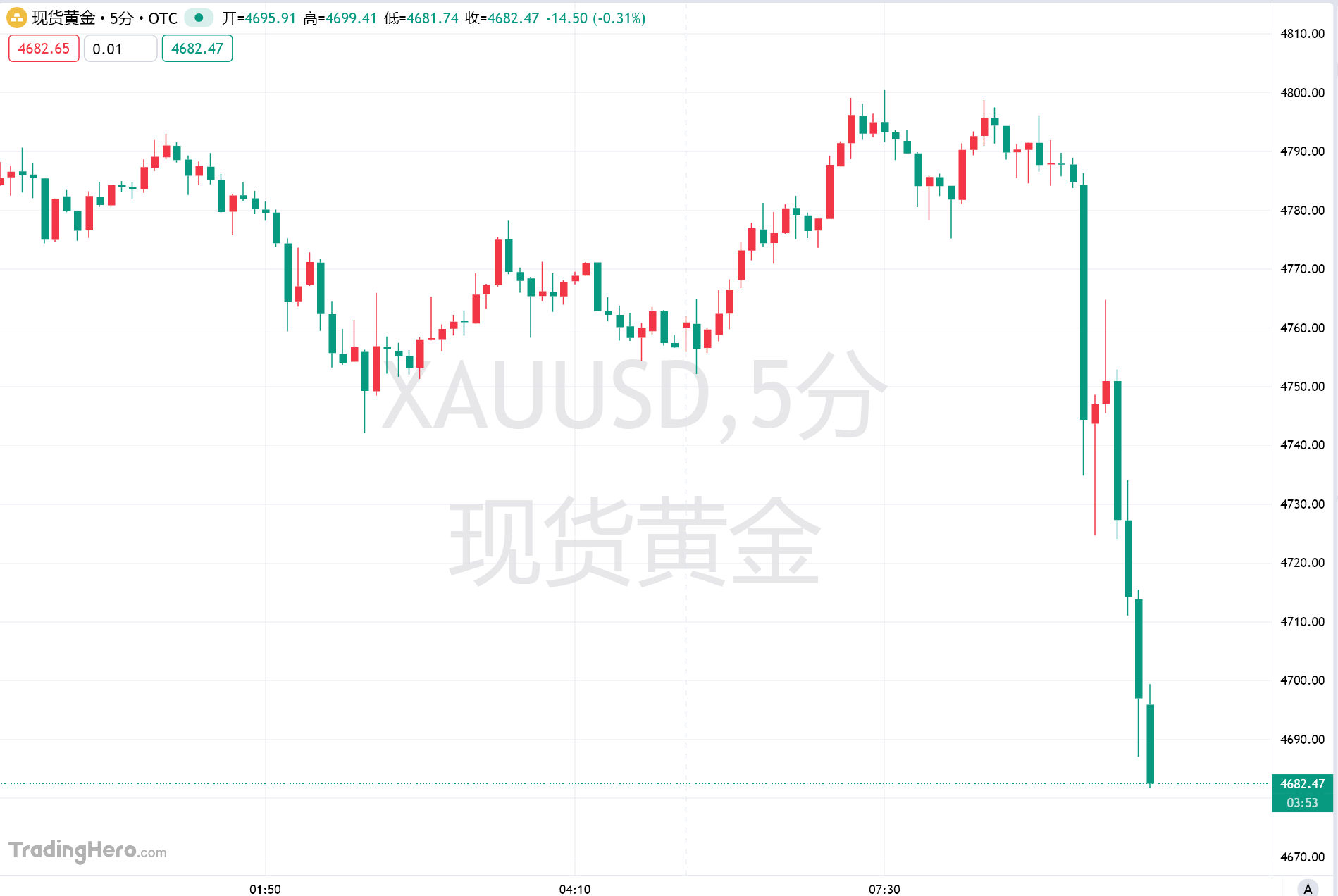随着特朗普暗示军事行动可能在短期内升级,国际现货金银价格一路狂泻,现货黄金失守4700美元/盎司,日内跌幅超2%。现货白银日内跌幅超3%,现报72.54美元/盎司。纽约期银跌破73美元/盎司,日内跌4.13%。