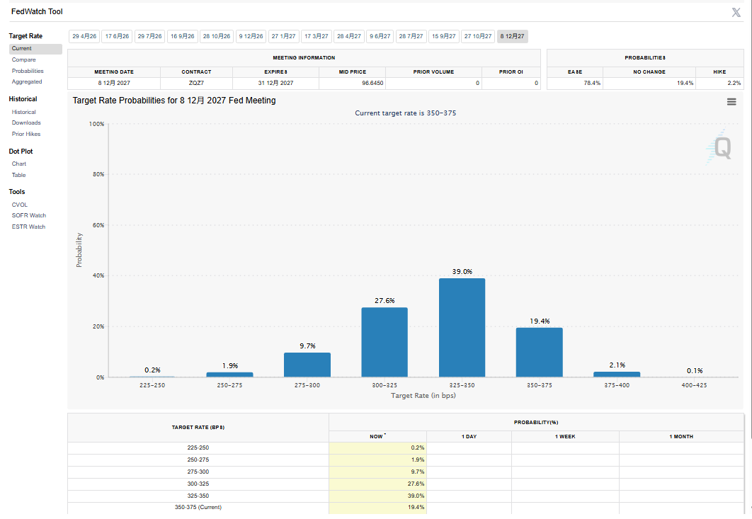 就在他讲话之前,市场对美联储12月前降息的预测概率是25%。但是特朗普讲话之后,直接腰斩到19.4%左右。