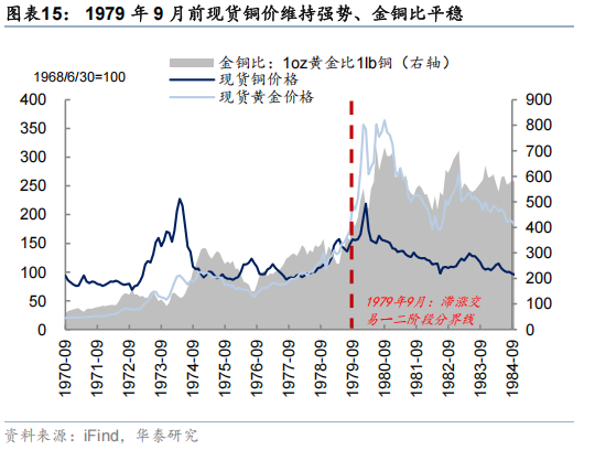 上述预期变化在资产价格上得到了充分印证。美股从1980年11月前高回撤27%,铜等工业金属同步重挫,金铜比快速上升并维持高位,全球风险资产普遍承压。美债收益率曲线在这一阶段的多数时间维持倒挂,短端利率跟随货币政策高位运行,长端则因美股经济衰退预期加剧而承压,市场对经济增长前景持悲观态度。