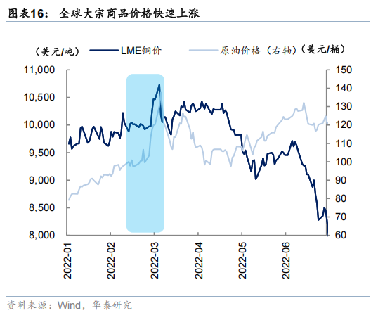 2022年类似,俄乌冲突爆发初期,美国经济“胀”已成为共识,但“滞”尚未定价,市场以避险交易为主。2022年在俄乌冲突发生后,全球大宗商品价格急剧飙升,原油在两周内飙升超过35%。铜价短期也大幅上涨7%,反映出市场对俄罗斯供给中断的恐慌性定价。股市因风险偏好下降而调整,标普500从2月25日至3月8日回撤约4.9%(若从年初高点算,累计回撤约13%),但随后市场迅速反弹11%修复前期失地。市场普遍依据历史经验认为,这属于典型的“事件驱动型”波动,地缘冲突对全球增长的冲击是短期的、局部的(主要影响欧洲),不会改变美国经济的中期趋势,因此标普500的盈利预期并未出现下修。这一阶段,美联储强化了市场的乐观态度。在2022年3月的议息会议上,美联储虽然大幅上调了通胀预测(PCE从2.6%上调至4.3%),但将经济预测仅从4.0%下调至2.8%,并维持失业率预测在3.5%的低位预期,市场彼时认为美联储有足够的工具在压制通胀的同时不伤及就业,因此美国经济衰退预期(滞)并未系统性上修,定价重心完全放在通胀和加息节奏上。