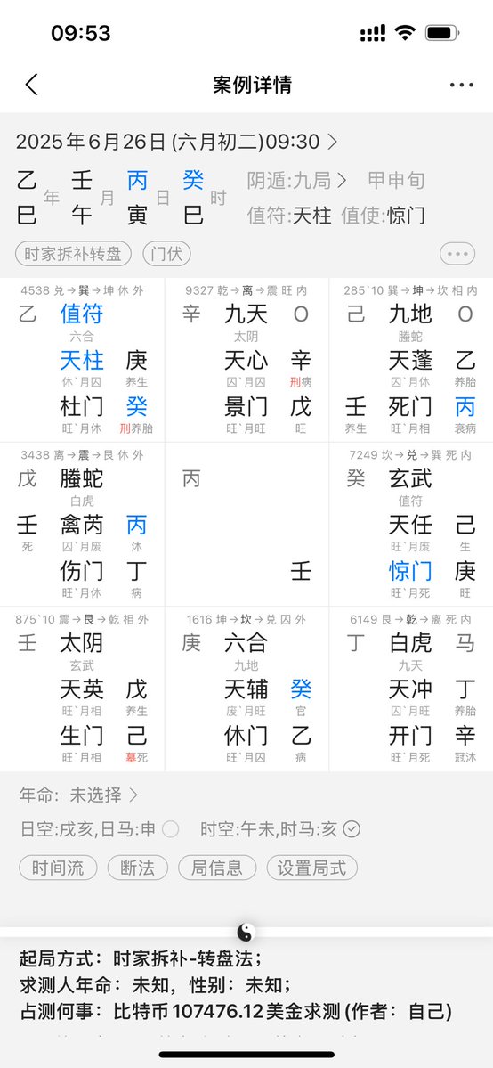 比特币 $BTC 短期 行情观点 短期周期:现在到月底(敲重点) 行情观点: 比特币预测时候价格 107476.12 美金(BN现货价格) 比特币短期还会上涨一点,在这个周期内是先涨后跌的情况,涨到10.9万美金附近,可能就会遇到阻力,很难更进一步。 在7月1号前 ,我从卦上分析无法突破 11 万美金。 涨到 10.83 万美金附近,行情又开始新的一轮博弈了。 如果按上分析,结合盈亏比,这个位置在 短期 为周期来说,就不适合进入了。 #BTC #奇门遁甲