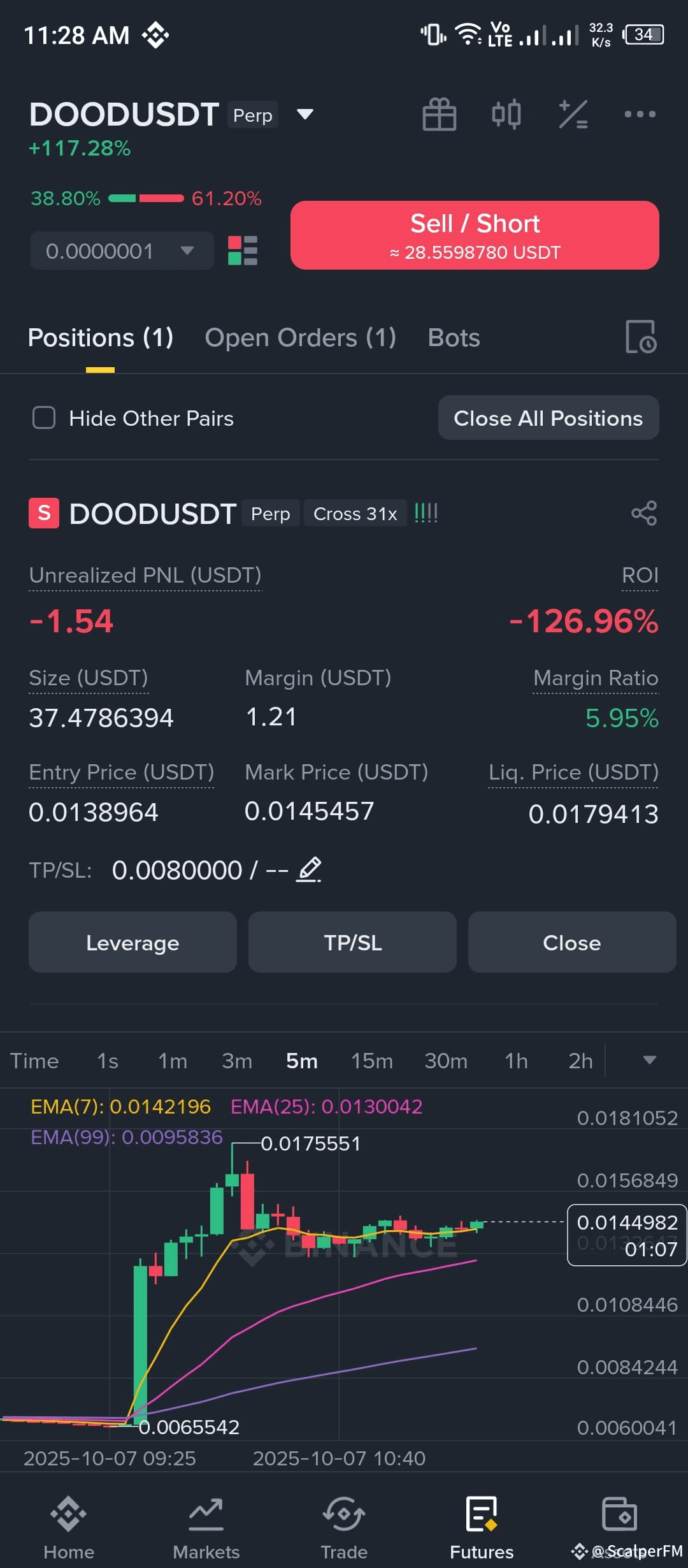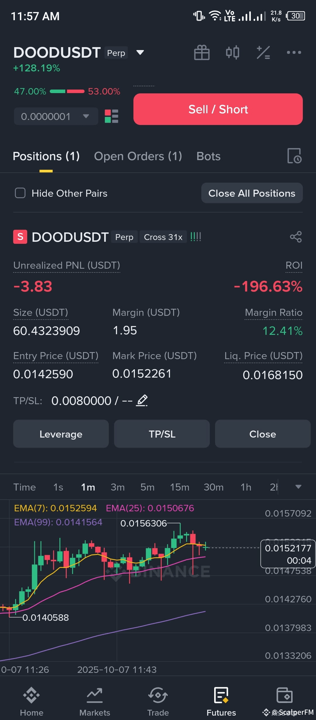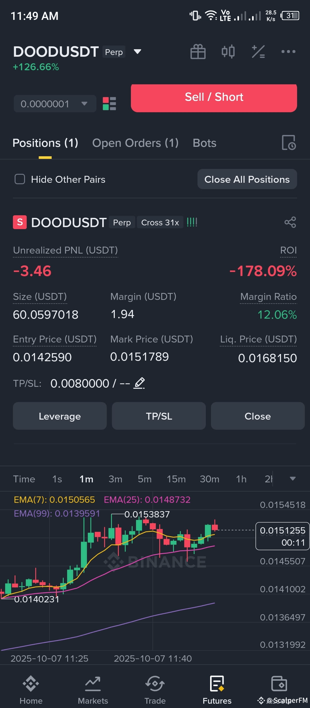 $DOOD,当我面临巨额亏损时,我只是假装等着它回来,结果它真的回来了,而不是让我爆仓。
