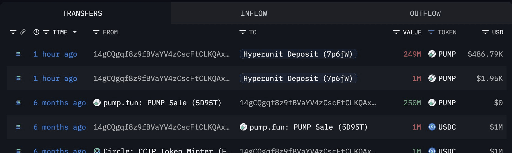 Six months ago, this investor deposited 3 million USDC into two wallets, accumulating 750 million tokens during the $PUMP public sale. Now, those tokens are worth only $1.47 million.