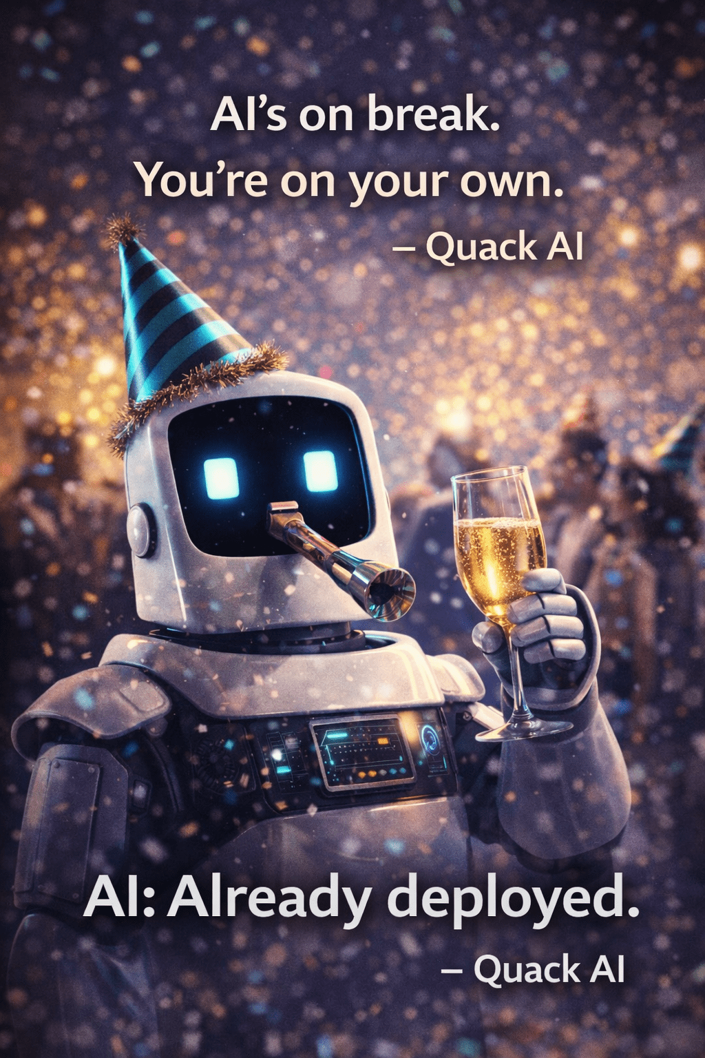 AI 正在休息。 你得靠自己了。 AI:已部署完毕。 @QuackAI_AI 官方账号 #新年快乐 #AI #梗图