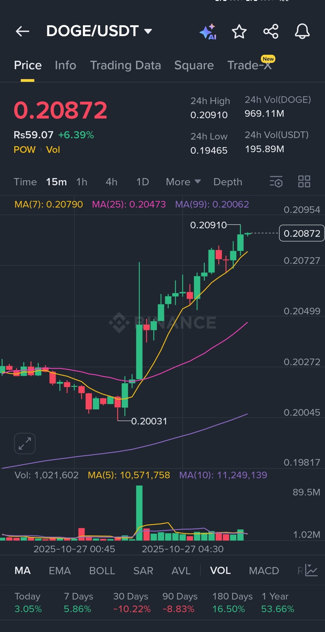 Price: $0.20872 | 24-hour gain: +6.39% 📈