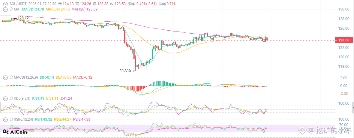 Currently, SOL is stuck around 120, with resistance at 125-130 and support at 112-115. In short, it's a choice.