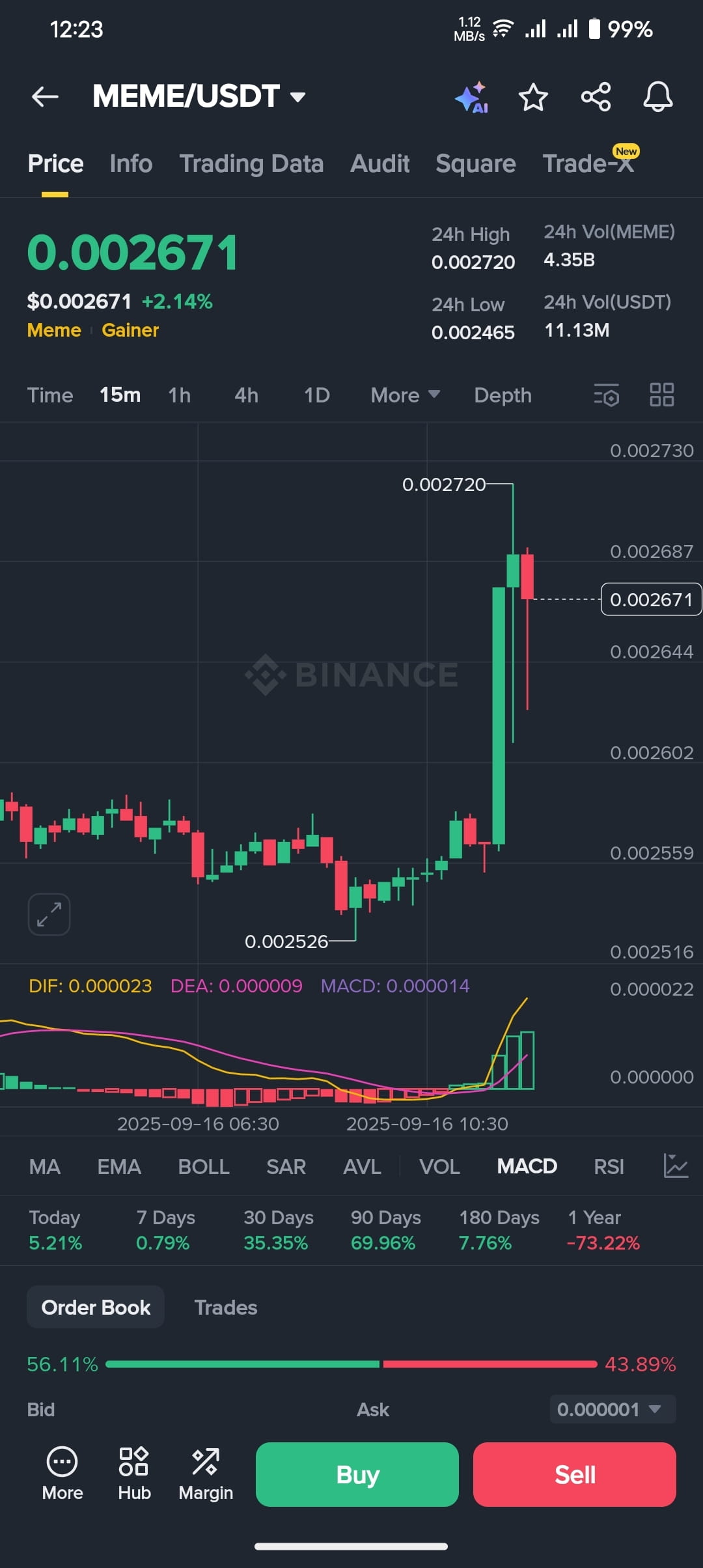 $MEME saw a significant bullish surge, breaking through intraday resistance and moving higher on strong buying. This breakout signals renewed momentum, and further gains are possible if buyers maintain control.
