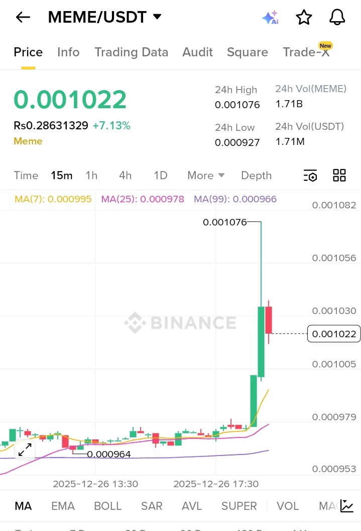 $MEME {Spot} (MEMEUSDT) Alert! Price: $0.00104 24-Hour Change: Short liquidation $11.85K Sentiment: Bullish Support: $0.00100 Resistance: $0.00108 Target: $0.00115 Short sellers' game is over! Agar roll continues raha, toh MEME strong pump dikha sakta hai! Traders, apni entry smart rakhein aur stop loss use karna na bhoolen! #CryptoNews #MEME #BinanceTrading #CryptoAlert