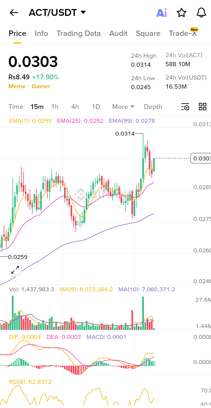 $ACT price surged 17.90%, strongly breaking through EMA(7) and EMA(25), signaling a strong comeback for the meme craze.