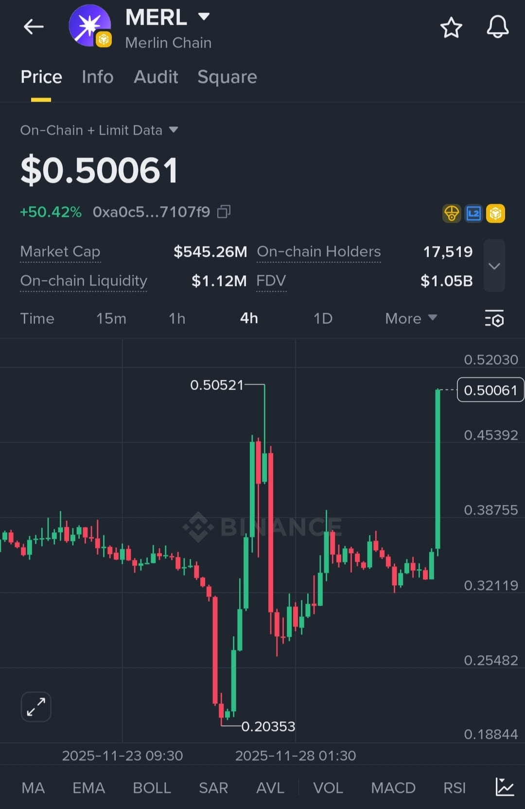 MERL just hit a 50% vertical candlestick…