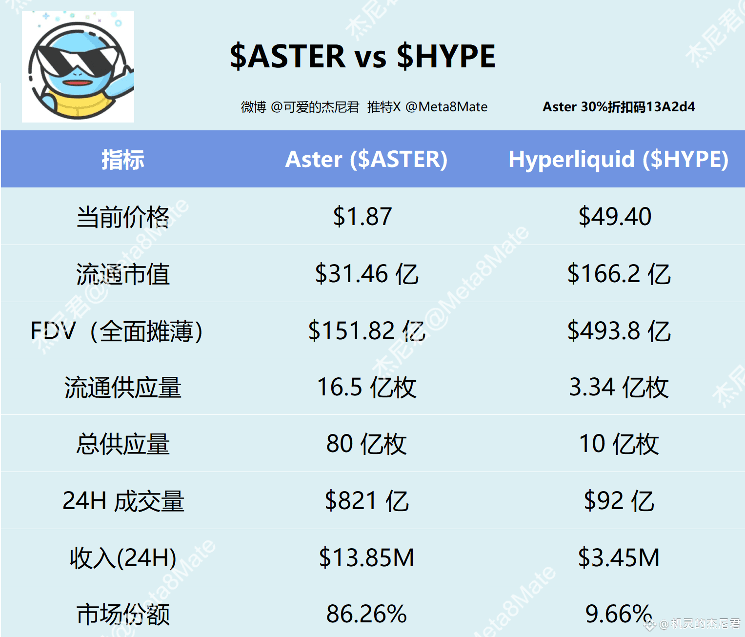 Aster @Aster_DEX S2 最后一周只剩几天时间,目前数据已基本稳定: ·每日收入约$13M; ·PERP交易量约$83B,占据市场 86% 份额。 对比 @HyperliquidX: ·每日收入约$3.45M, ·交易量约$9.2B,仅占市场份额的 9.6%。 很多人说 $ASTER 目前的成绩全靠挖矿补贴,下周潮水退去,就知道谁在裸泳了。 相信表哥 @cz_binance ,相信Aster @Leonard_Aster !~